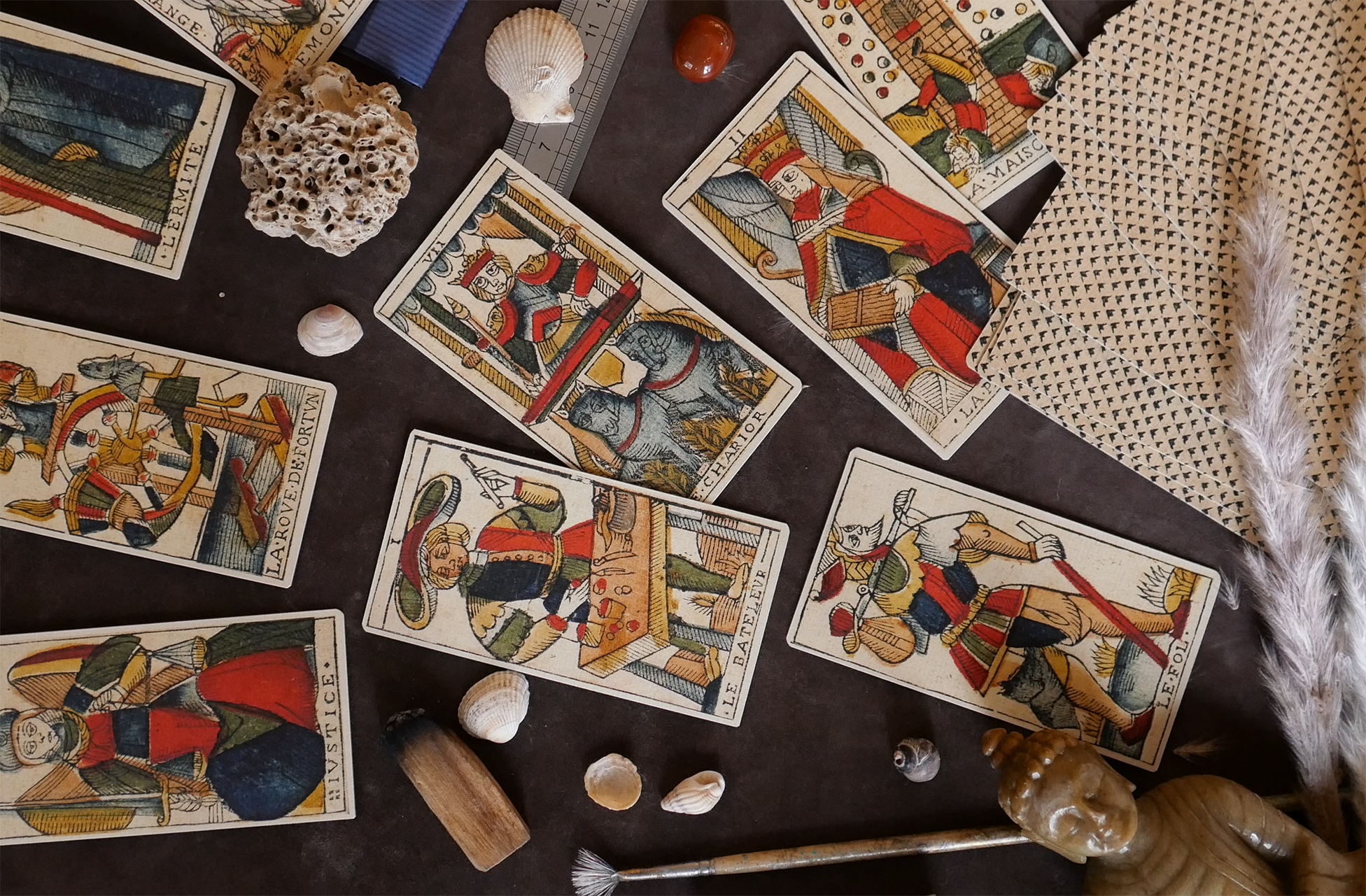 le monde. De retour en France, je m’émerveille face au Tarot de Marseille. Je me passionne pour son