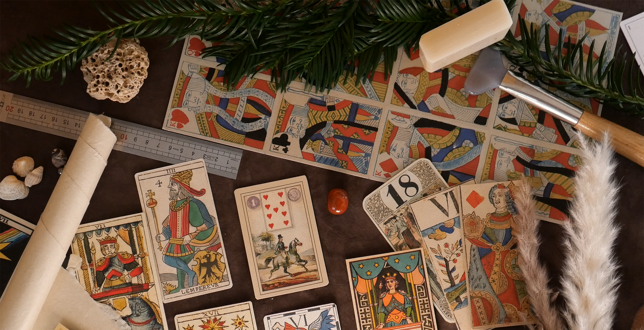 Pour rendre hommage à une tradition oubliée du fait de l'industrialisation, j'ai crée un atelier d'artisanat d'art, où chaque carte, chaque jeu, est méticuleusement façonné avec une profonde attention et une intention créative